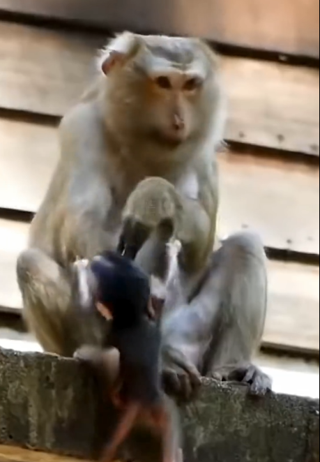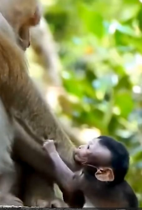 The baby monkey was still young, but no longer a newborn. Its eyes were bright with curiosity, its grip strong, its movements clumsy yet confident. For weeks, the mother had been preparing for this stage—gradually encouraging independence. Weaning was not rejection; it was a necessary step. In the wild, a baby monkey must learn to rely on itself while still protected by the troop.