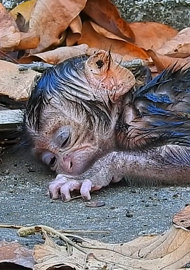 In the quiet hours of early morning, when the forest still breathes in soft layers of mist, a tiny newborn monkey clings to the world with nothing but instinct and hope. His eyes are barely open, glossy and confused, searching for warmth that should be there. His fingers curl and uncurl around empty air. He does not understand why the heartbeat he knew so well has disappeared. He does not understand why his mother, the center of his universe, is gone.