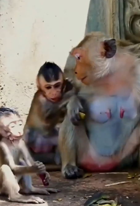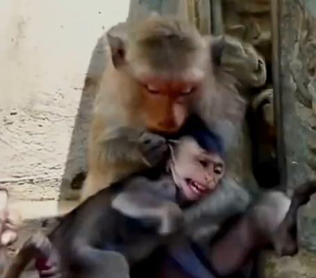 The aftermath of the incident is equally instructive. The baby monkey may approach the elder cautiously in the following days, showing signs of submission such as lowering the body, avoiding direct eye contact, or grooming from a respectful distance. These behaviors indicate learning and adaptation. Over time, repeated interactions, both playful and corrective, create a framework of understanding, trust, and social cohesion. The baby learns not only to avoid accidental conflict but also how to engage respectfully and successfully within the troop.