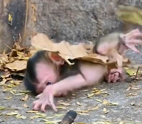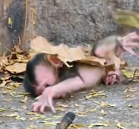 Hours passed, and the infant’s cries grew weaker as hunger and cold began to take their toll. It rolled helplessly in the soft leaves, its small limbs unable to find the strength to cling or grasp. Predators prowled silently nearby, and even the smallest noises of the forest could spell danger. Yet, amidst this vulnerability, a glimmer of hope appeared.