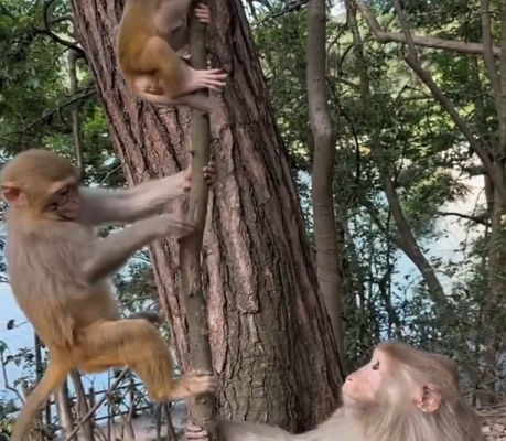 In the heart of a lush, sprawling jungle, life often follows the rhythm of instinct, hierarchy, and survival. Among the dense foliage and ancient trees, the monkeys swung from branch to branch, chattering and calling in a language that only they fully understood. The troop was led by a dominant alpha male, a seasoned and battle-scarred monkey who had earned his position through cunning, strength, and intelligence. But it wasn’t always the alpha who drew attention in the troop. Today, the focus was on the second monkey — a curious, unpredictable, and often bewildering character who seemed to defy the subtle social rules of the group.