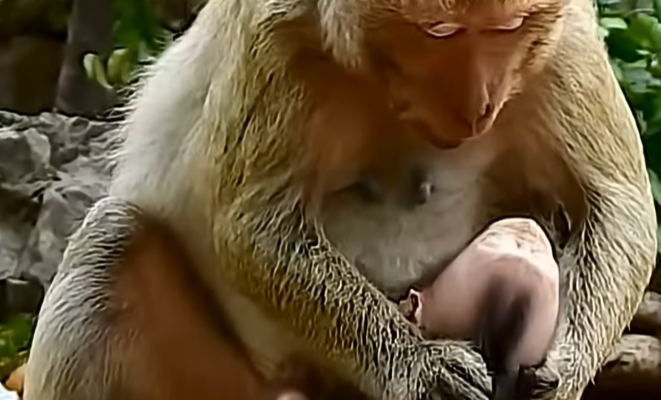 Among them was a young mother monkey and her tiny baby. The little one had only recently begun to explore the world beyond his mother’s warm embrace. His fingers were still clumsy, his balance uncertain, and his cries loud and frequent. Like all babies, he depended completely on his mother for food, comfort, and protection. But on this particular day, something unusual happened.