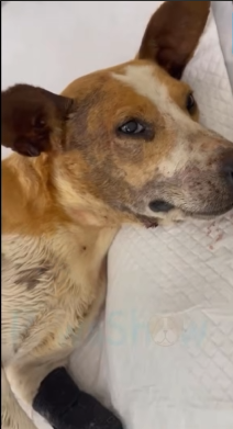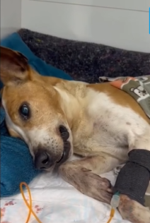 When she stepped out and approached, her heart clenched. Up close, she could see the extent of his injuries. His body was thin, ribs faintly visible beneath matted fur. One leg lay at an unnatural angle. His eyes, though clouded with pain, held a spark of life—and a silent plea.
