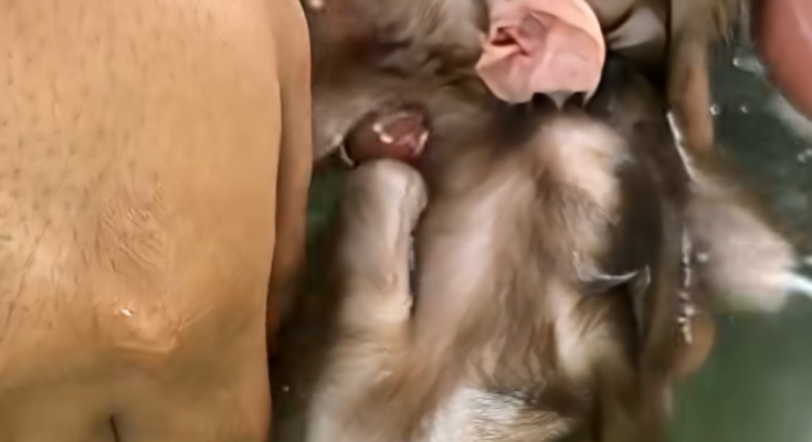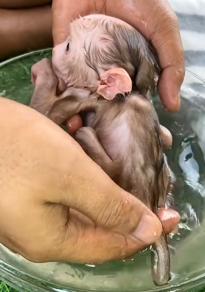 Back in the village, the baby monkey’s cries were growing weaker. The villagers decided to contact a local wildlife rescue center. Within a few hours, trained caregivers arrived. They carefully wrapped the baby in a soft cloth to keep him warm. One caregiver gently examined him, checking for injuries and signs of dehydration.