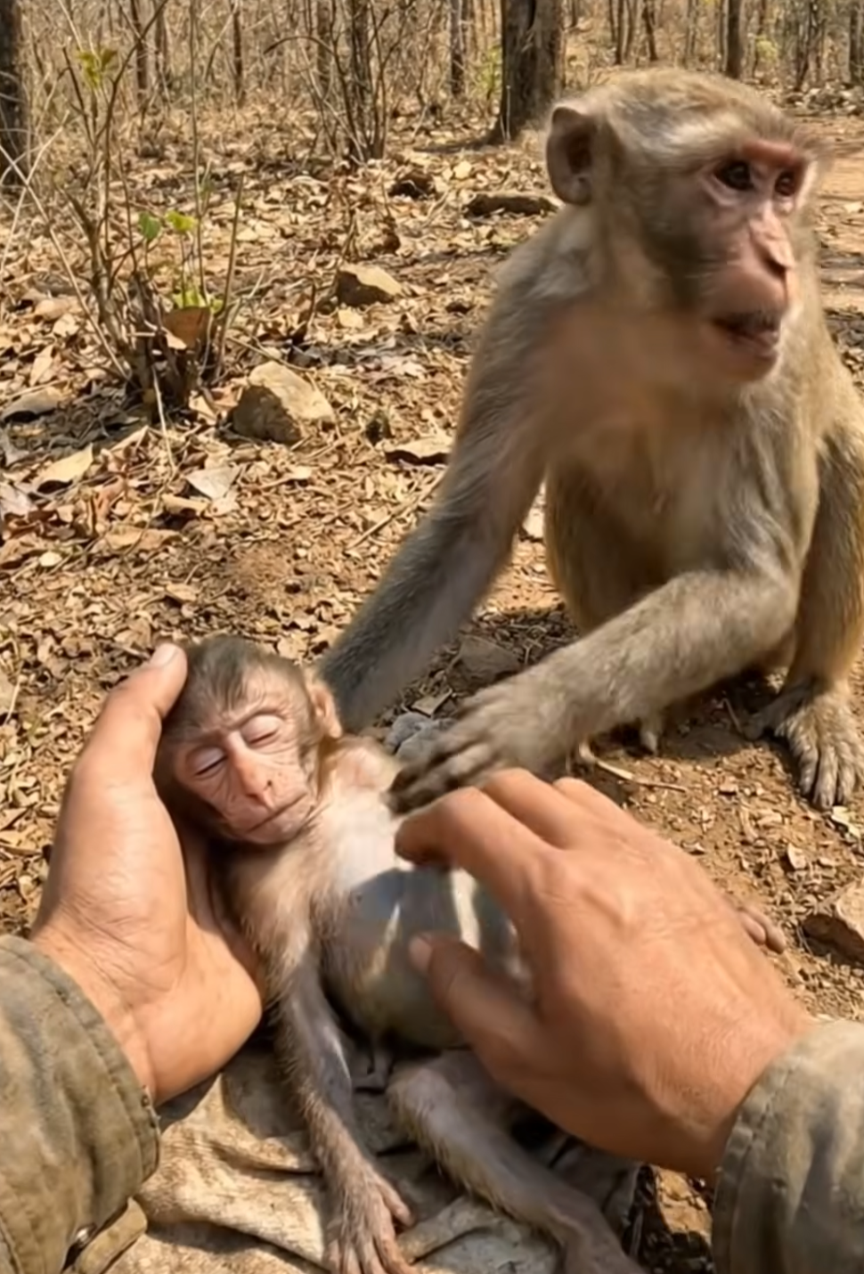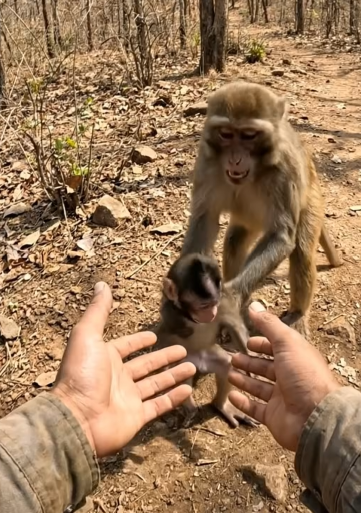In the wild, baby monkeys can sometimes become weak from illness, dehydration, or a sudden chill. Their small bodies are fragile. A moment of weakness can quickly turn dangerous.