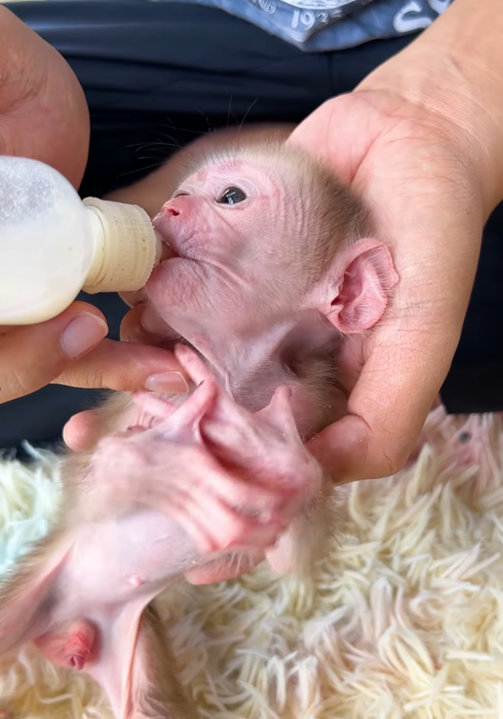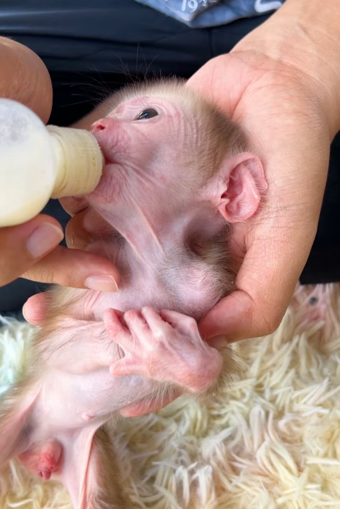 As evening fell, the baby monkey lay quietly in a warm crate lined with soft blankets. For the first time in what might have been days, his stomach held gentle nourishment. His breathing was calm. His tiny fingers clutched the edge of the cloth, but no longer in panic.