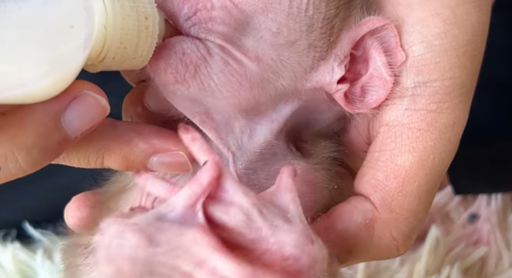 The little monkey lunged forward and began drinking as if he feared the milk would disappear. He gulped desperately, swallowing too fast. Within seconds, he started coughing. Milk dribbled from the side of his mouth as he struggled to breathe.