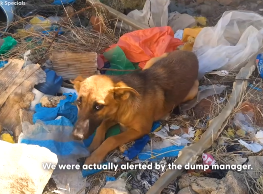 The puppy was filthy, his fur matted with grease and dirt. One eye was crusted shut, and his thin body trembled as he tried to stand atop the pile of trash. When he saw Dara, his tail wagged weakly—hesitant but hopeful.