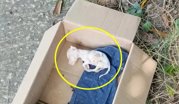 Lying helplessly on a torn piece of cloth was a newborn puppy — so tiny it looked more like a fragile bundle than a living creature. Its eyes were still closed, its skin thin and pink beneath sparse fur. Ants crawled over its body, and flies hovered relentlessly, drawn by the scent of weakness.