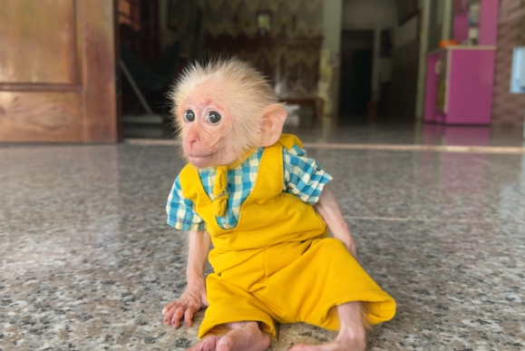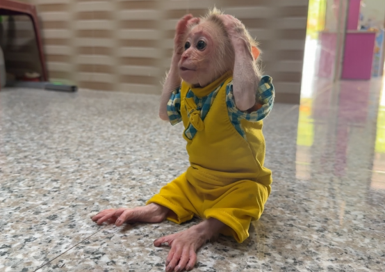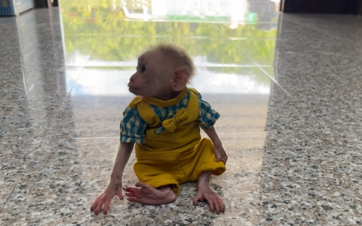 The baby monkey adapted in its own way.
