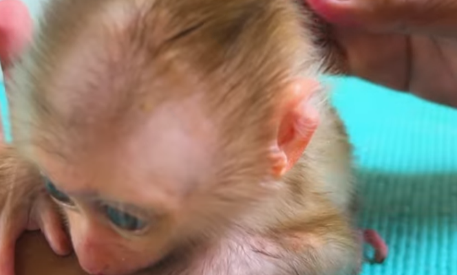 I watched as the baby monkey shifted her tiny body, reaching up to tug at her motherâs ear. Her mother responded by grooming her patiently, licking and smoothing her fur with careful movements. The baby squeaked in delight and tried to climb over her motherâs shoulder, only to slide back down clumsily.