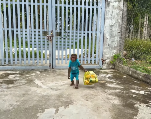 Along the way, the baby monkey kept spirits high with cheerful chatter, while Cubis helped steady the injured stranger.