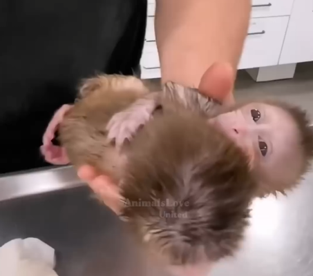 The younger monkey buried his face against his companion’s chest, seeking comfort in the only presence that remained.