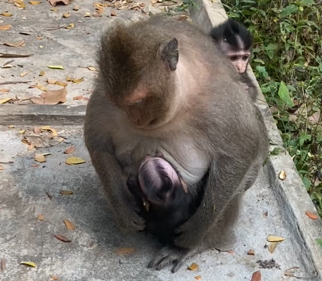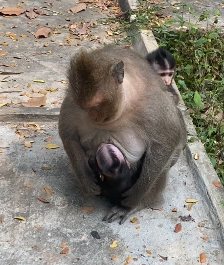 To his surprise, the older monkey settled not far away, also seeking cover.