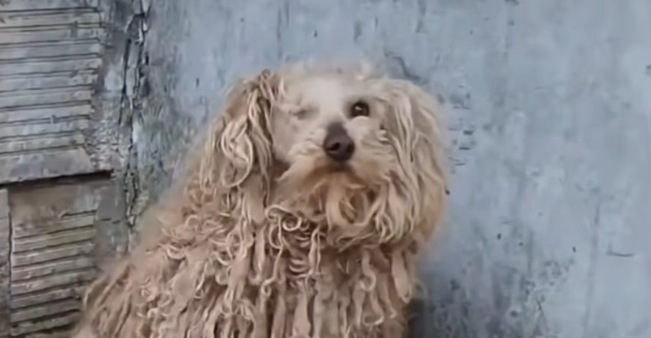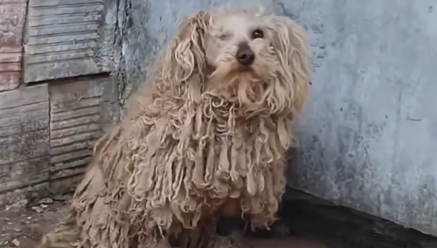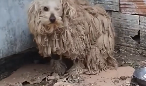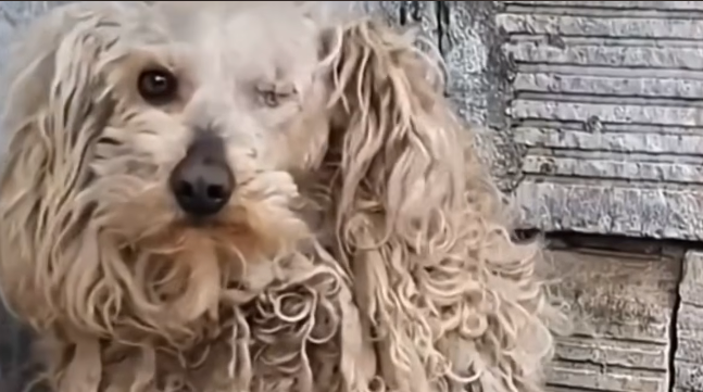 He was curled tightly against the wall, his body trembling so violently it seemed as though the cold itself lived inside him. His fur was matted with dirt, clinging to his thin frame, and every breath came out in soft, shaky whimpers.
