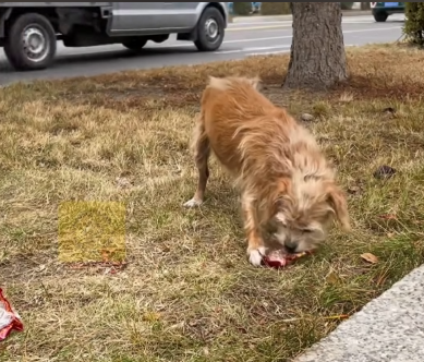 Some days, a kind customer would leave a small piece of bread or a bit of leftover food. She accepted it gratefully, tail wagging softly, then returned to her spot — watching, hoping, bowing again whenever someone approached.