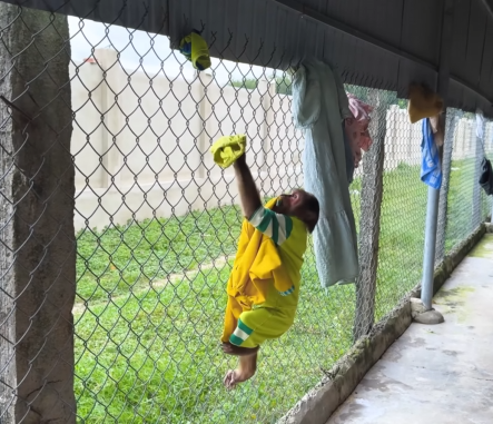 Over the next few days, CUTIS continued adding to his creation. He brought small toys, soft cloths, even a favorite stuffed animal, arranging everything carefully. Sometimes he would sit inside the nest, watching the doorway as if guarding it.