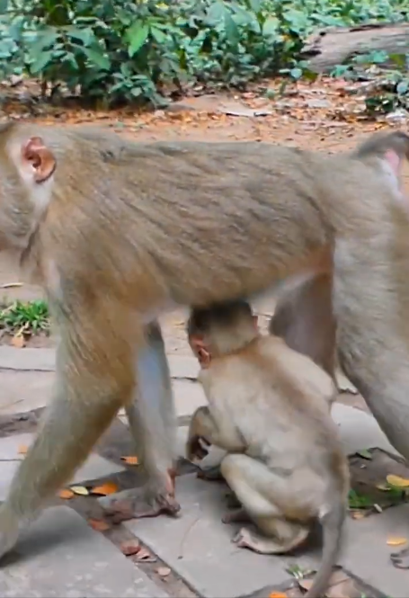 Days turned into weeks, and the young monkey grew stronger, faster, and more clever. He no longer glanced back to the mother for guidance with every move. His stomach may still grumble, but his hands and instincts responded with confidence. He had become a hunter in his own right, a forager, a survivor. “Big one, look for food yourself” had shifted from a reprimand to a declaration of growth.
