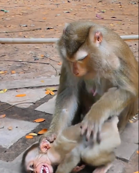 The words echoed through the clearing, firm but not cruel. A mother monkey had spoken to her grown offspring, the one who had lingered too long in her shadow, expecting scraps and guidance. The child — no longer small, but still learning the ways of the world — stared at her, uncertainty in his eyes. For months, he had watched and followed, waited for handouts, and relied on her for every meal. Today, that would end. Today, he would have to hunt, forage, and fend for himself.