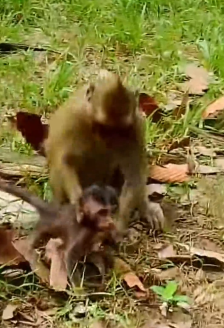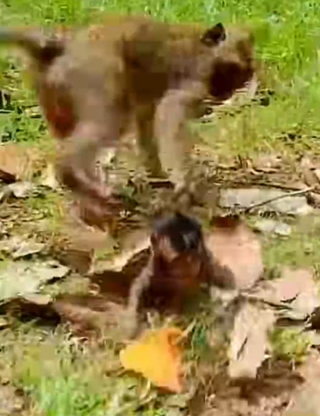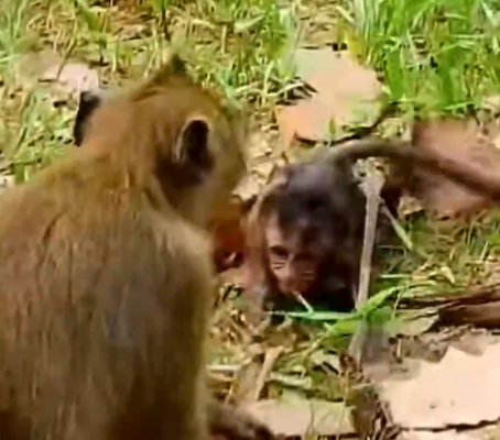 The small body flew through the air before crashing onto the hard ground below. The fall was sudden and painful. The baby monkey cried out in agony as his tiny limbs struck the earth.