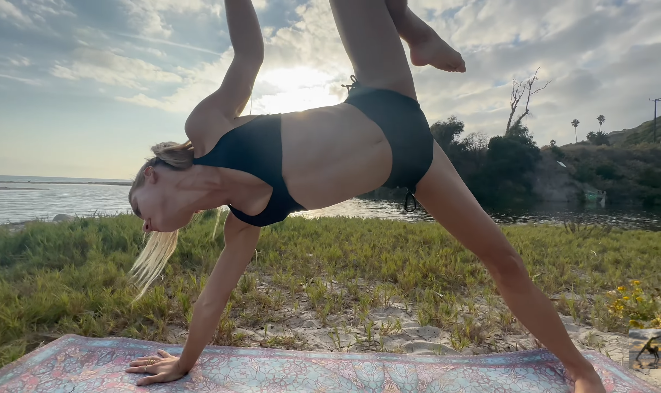 With the ocean in front of you, the pose feels expansive and energizing.