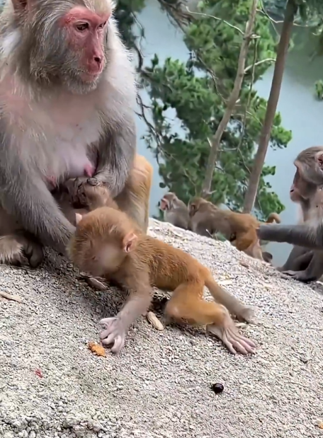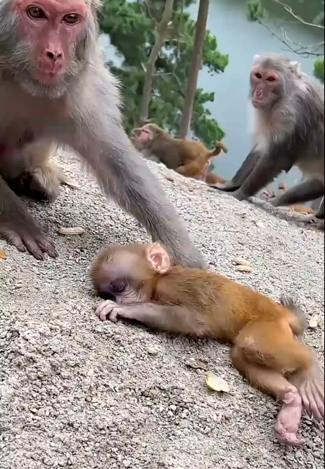 When the troop finally regrouped, the scene left everyone in tears. The older monkeys looked at Buem with awe, the younger ones whispered stories of bravery, and even humans observing from a distance could not hide their emotional reactions. A tiny monkey had risked his life for the love of another, a love so pure that it transcended instinct.