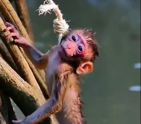 The baby monkey looked so vulnerable, yet so determined to survive.
