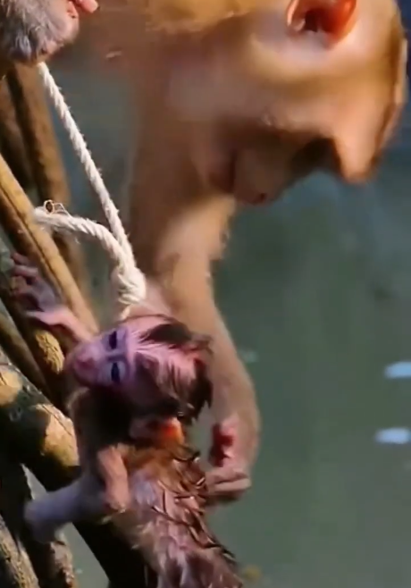 One man gently wrapped the baby monkey in a soft cloth. At first, the tiny animal resisted, letting out small cries. But after a few moments, it seemed to relax slightly, perhaps sensing the warmth and safety.
