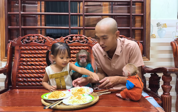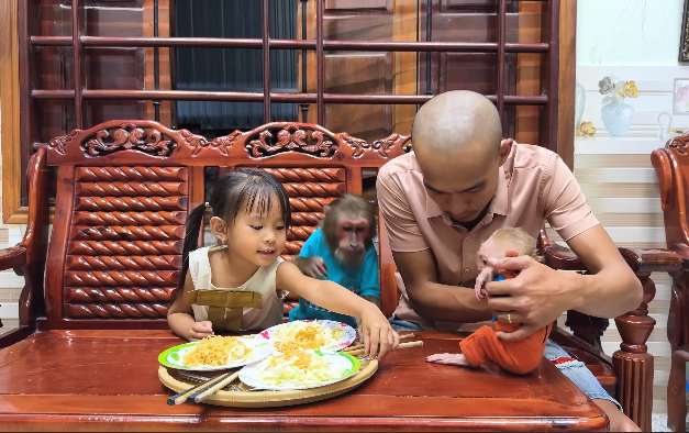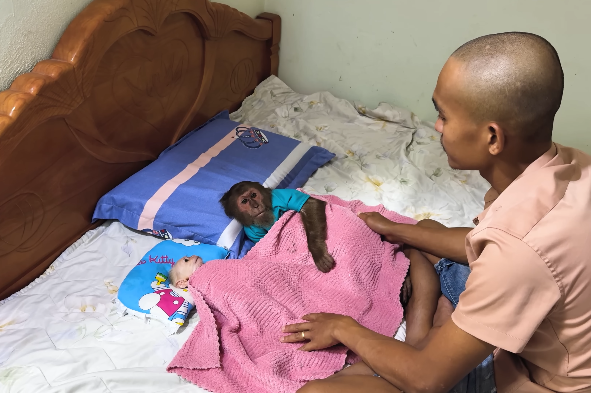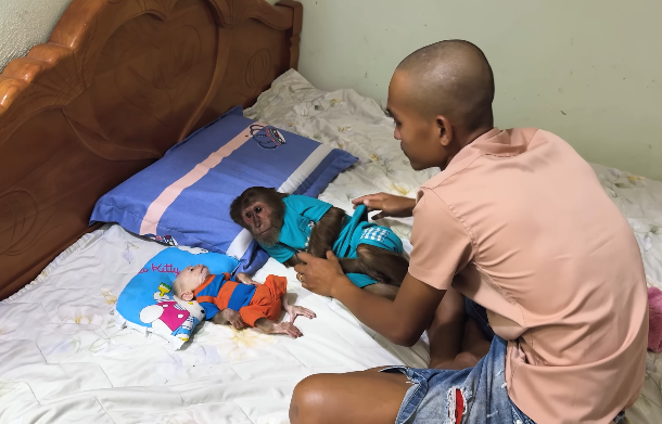 The beauty of the moment was not just in the reunion, but in the shared joy of anticipation and welcome. CUTIS, known for his playful antics, sat nearby, watching the interactions with a mixture of pride and amusement. He had already begun to understand that this little monkey was not just a baby—it was a new member of the family, a sibling, and a companion.