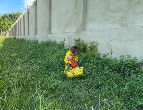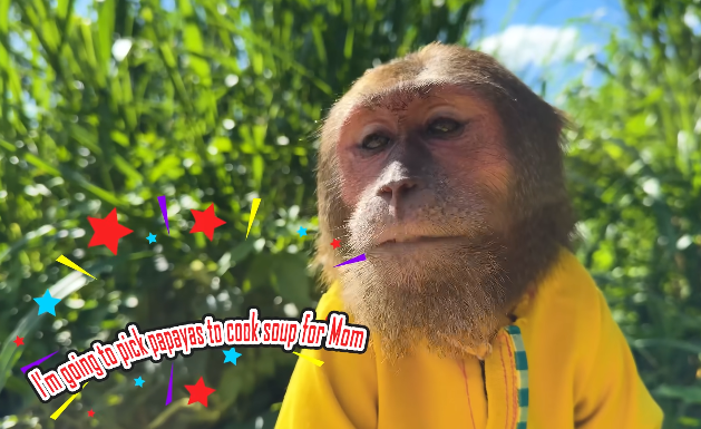 CUTIS followed closely, guiding Dad to the best sources of food and occasionally pausing to communicate preferences on presentation. The baby monkey, though too small to help actively, observed the process intently, occasionally reaching out to touch the ingredients with curiosity. Together, they formed a small team, united by love and a shared goal: ensuring that Mom received the best care possible.