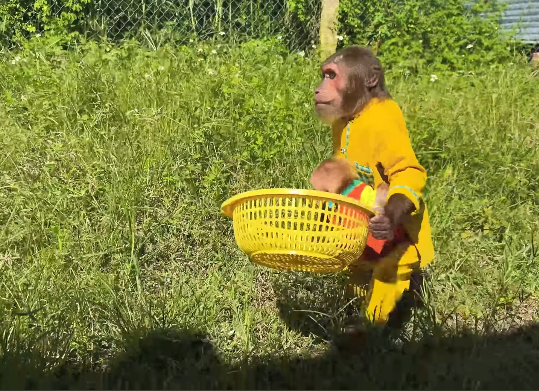 The baby monkey, sensing the care being given, reached out toward the dish. It was a small but meaningful gesture, as if signaling approval for the family’s effort. CUTIS gently guided the newborn’s hands, showing it how to interact safely while still allowing the natural curiosity of the baby to flourish. In these small interactions, lessons about family responsibility, nurturing, and care were quietly being passed down from one generation to the next.