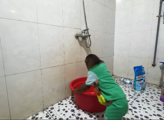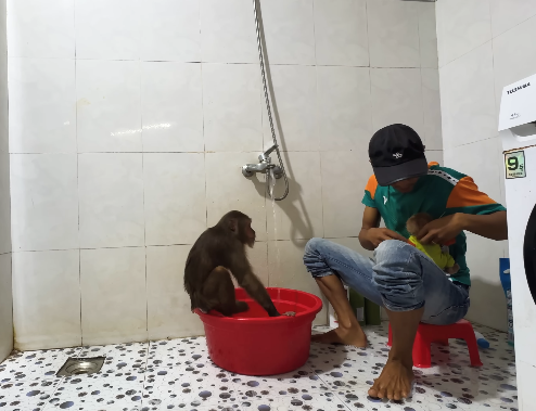 The baby monkey’s curiosity quickly got the better of it. After tasting a sweet mango, it began rolling a nut along the ground, chasing it and laughing every time it escaped. Then it tried to lift the tiny wooden toy, balancing it precariously on a branch before it tumbled off. CUTIS couldn’t help but giggle at the clumsy antics. Even Dad laughed heartily, clearly enjoying the sight of his family so delighted.