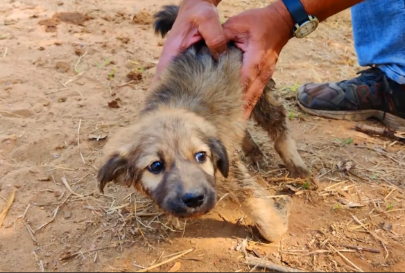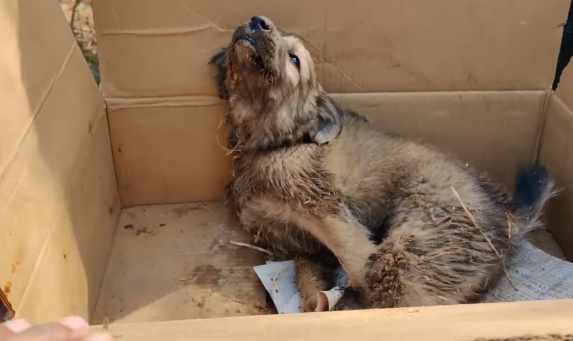 The puppy whimpered softly, his tail giving the faintest wag. It was a small gesture, but it carried so much emotion. Despite everything he had been through, he still trusted.