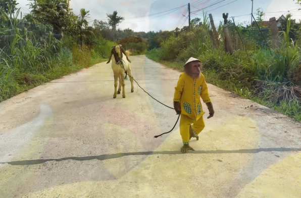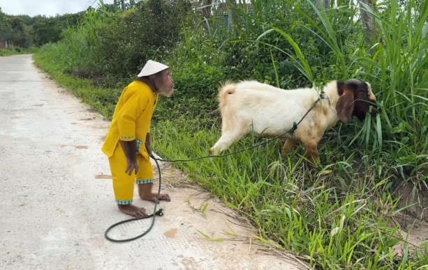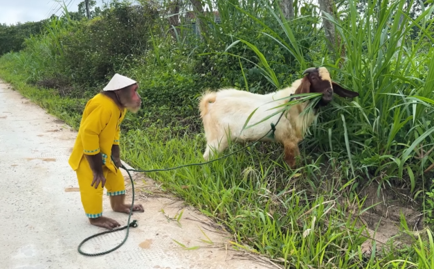 One day, a farmer was struggling to herd his goats, which had wandered into a thick patch of reeds. CUTIS observed from a nearby tree. The baby monkey seemed hesitant at first, but then mimicked CUTIS’s gestures. CUTIS began signaling the goats with exaggerated arm movements, while the baby monkey ran behind them, gently nudging strays back toward the farmer. Within minutes, all the goats were safely guided back to the pen. The villagers couldn’t stop laughing and clapping—they had never seen such a sight! A monkey duo herding goats like seasoned shepherds? It was absurd, funny, and amazing all at once.