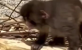 CUTIS, ever observant, immediately noticed the problem. The baby monkey perched nearby, tilting its head curiously as if analyzing the situation. CUTIS leapt from branch to branch, landing on the edge of Lina’s basket. With a careful tug, he managed to hold part of the basket steady, allowing Lina to collect the fruit without losing any more. The baby monkey, not to be outdone, grabbed a fallen apple and rolled it toward her. Lina could hardly believe her eyes. Here were two tiny monkeys, working together to help a stranger.