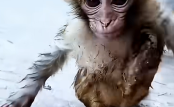 At the edge of the rainforest, where tall trees whispered secrets to the wind, a tiny monkey sat alone on a low branch. His fur was still soft and thin, …