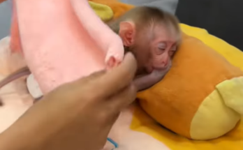 In the early morning, when the soft sunlight gently touched the leaves of the forest, a tiny baby monkey opened its eyes to a brand-new day. Its fur was still …