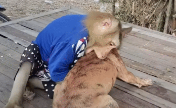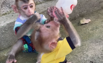 The morning sun filtered softly through the trees, casting golden streaks of light on the little courtyard where Bibi and the baby monkey usually played. Bibi, the slightly older monkey, …