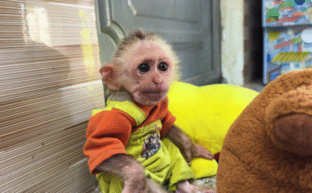The morning sunlight streamed softly through the curtains, painting golden stripes across the bedroom floor. Baby monkey Lala stirred under her blanket, her tail twitching slightly as she woke up. …