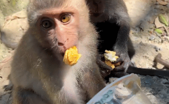 The morning sun peeked through the leaves, scattering golden light across the soft green grass. In the middle of the courtyard, Xuxu the little monkey sat swinging her legs, her …