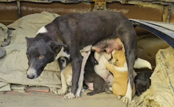 A Mother Dog Protecting Her Puppies Inside an Old Van, Surrounded by Old Vehicles 💔🐶😢 Read More