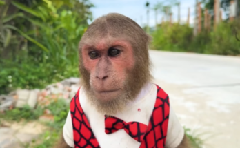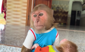 Early in the quiet morning, when the sun was just beginning to warm the garden leaves, a tiny baby monkey named Milo sat on the edge of a wooden tub, …